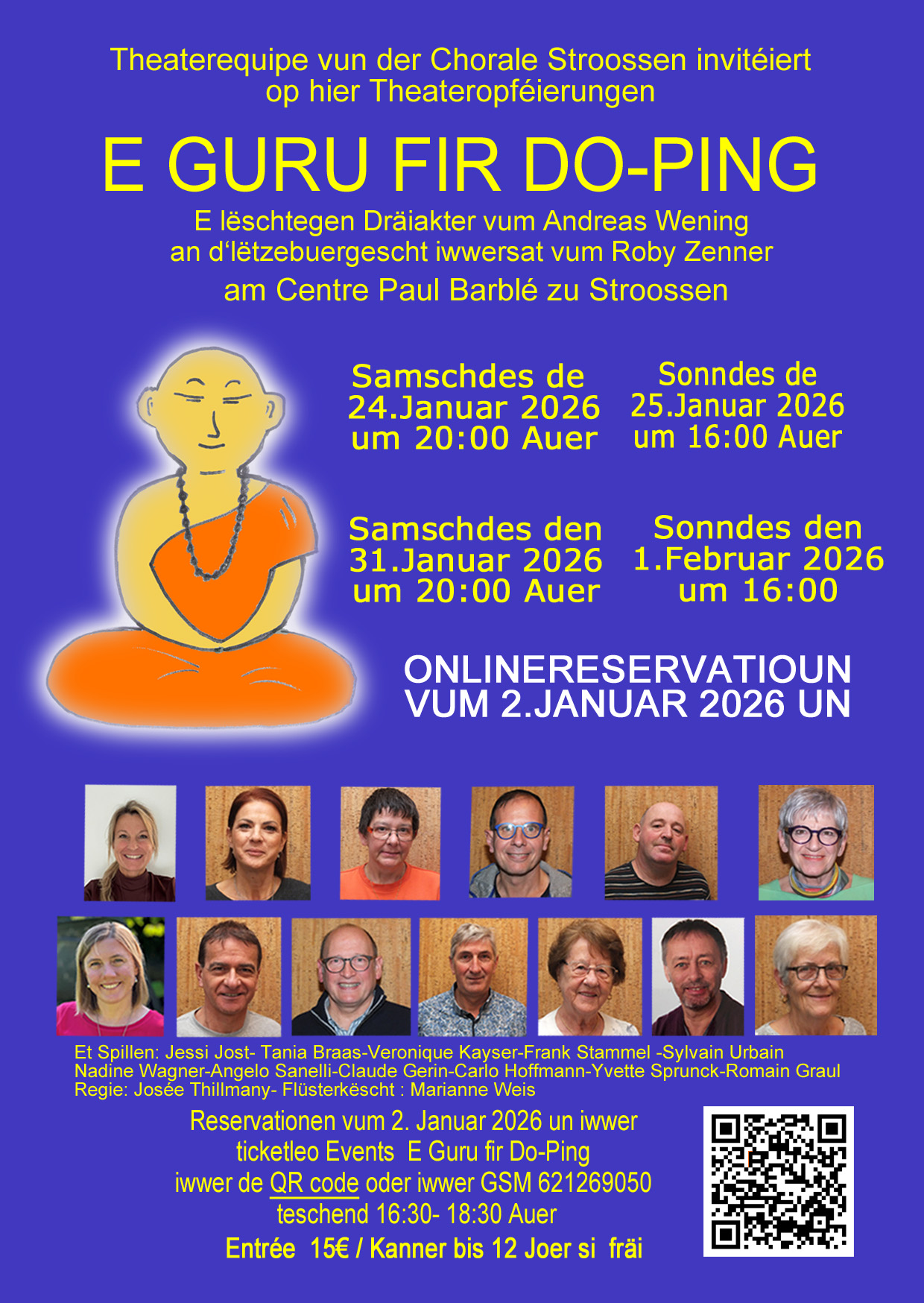 Reservatiounen vum 6.Januar un, tëschend 17:00 a 19:00 Auer iwwer GSM : 691 500 879 oder iwwer: chorale.strassen@gmail.com